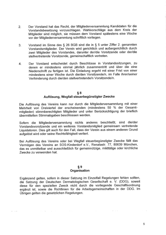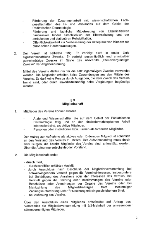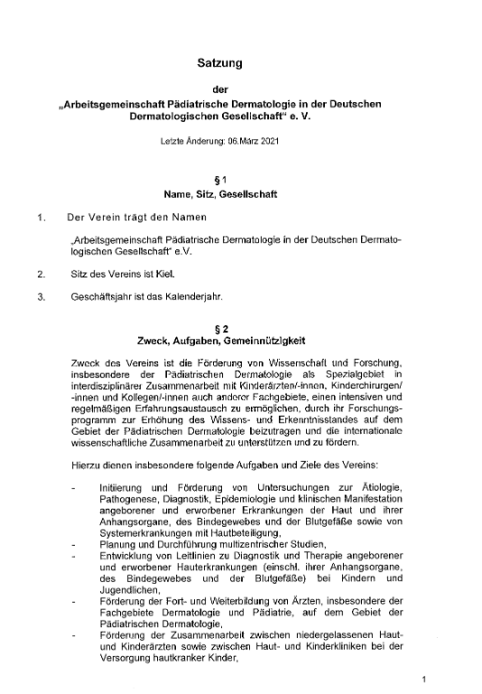 Satzung der „Arbeitsgemeinschaft  Pädiatrische Dermatologie in der Deutschen Dermatologischen Gesellschaft” e. V.
